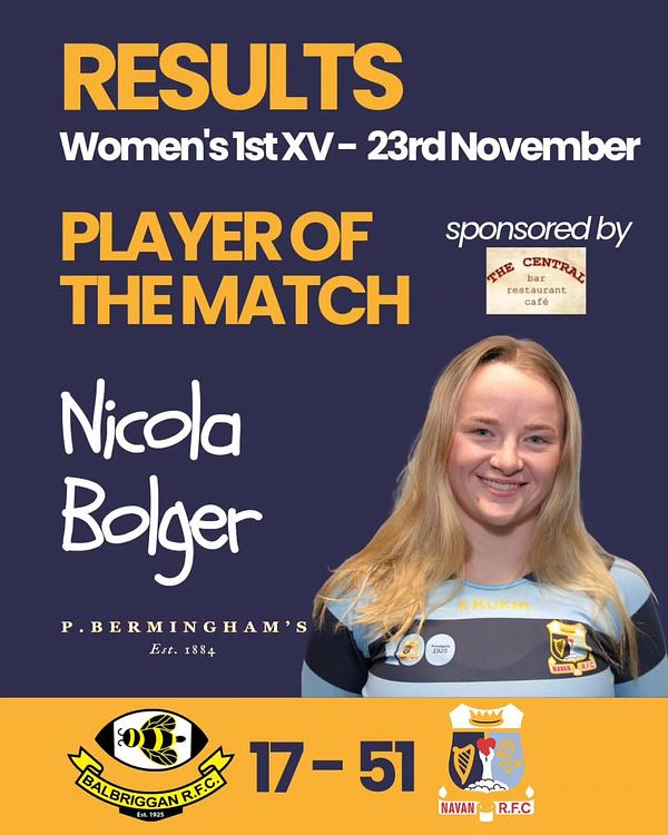 It was a powerful all-round team performance, with outstanding work across the pitch, and a standout display from Nicola Bolger, who was named Navan Player of the Match